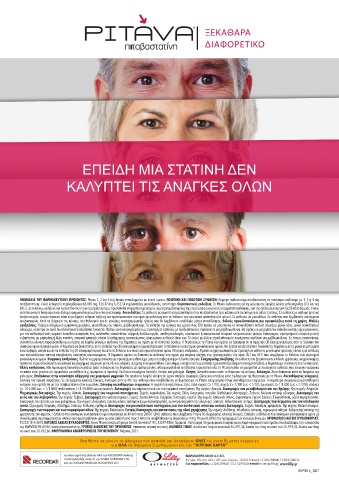 πιταβαστατίνης. Το(α) έκδοχο(α) περιλαμβάνουν 63,085 mg, 126,17 mg ή 252,34 mg λακτόζης μονοϋδρικής, αντίστοιχα. Θεραπευτικές ενδείξεις. Το Pitava ενδείκνυται για τη μείωση της υψηλής ολικής χοληστερόλης (TC) και της